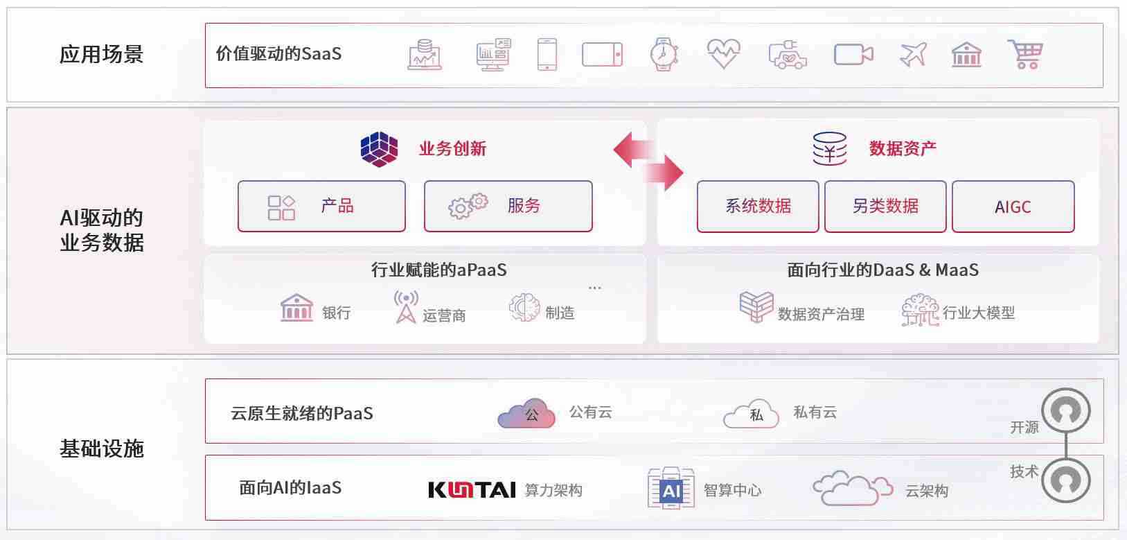 数字时代,,围绕企业数字化转型的关键要素,,,,狗子28数码开创性的提出数云融合战略和技术体系框架,,着力在云原生、、、数字原生、、、、AI原生和信创产业上架构产品和服务能力,,,,为处在不同数字化转型阶段的快消零售、、汽车、、金融、、、医疗、、政企、、、教育、、、、运营商等行业客户提供泛在的敏捷IT能力和融合的数据驱动能力,,,构建跨界融合创新的数字业务场景和新业务模式,,,助力企业级客户建立面向未来的核心能力和竞争优势,,全面推动社会的数字化、、、、智能化转型升级。。。。